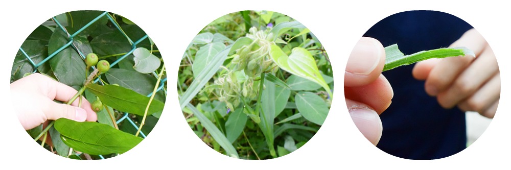 (中央・右)「ムラサキツユクサ」:紫色のお花は有名ですが、この葉を切った透明の部分は、実験でよく使う・・・など、研究あるあるも。