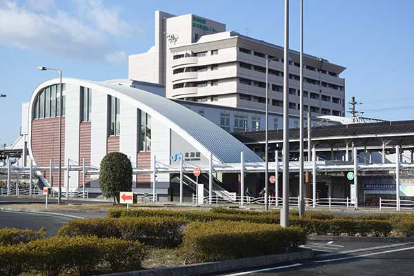 ここからスタート!駅舎の形が面白いですね。