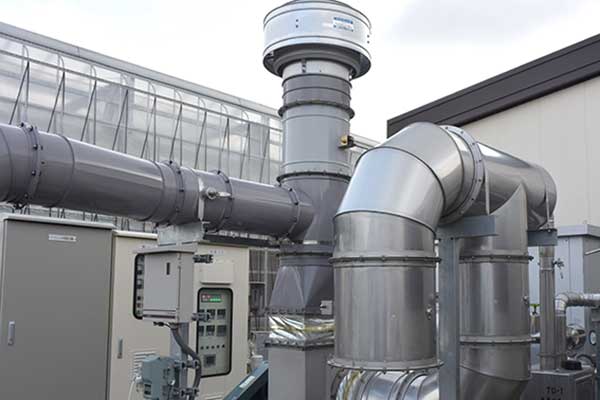 重油ではなく都市ガスを使うため、環境負荷がとても少ないです。排熱を暖房に、CO 2 を植物の光合成に利用します。