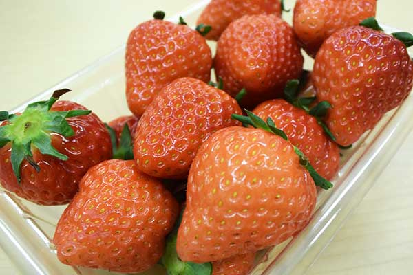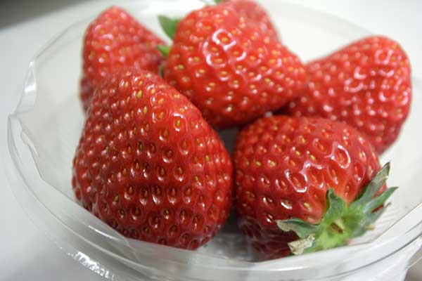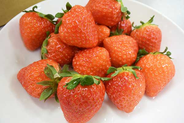 こちらが完成形。スイーツ店でも使われているイチゴ「さがほのか」。