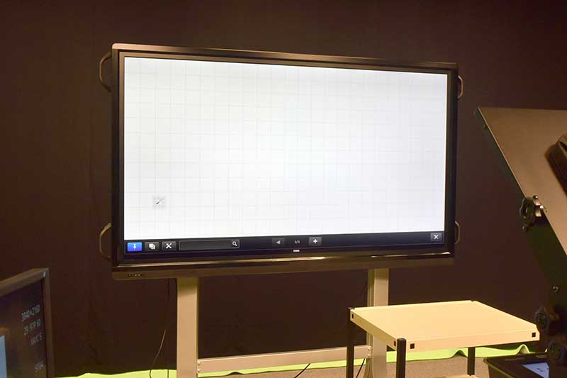 講義といえば黒板!これは電子黒板 「ビッグパッド」 (BIG PAD)。スタジオでかなりの存在感を放つサイズです。