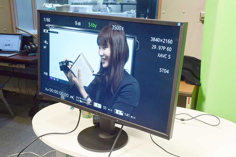 スタッフは、講義内容とスクリプトにズレがないか一緒に確認していきます。モニターで映りもチェック。