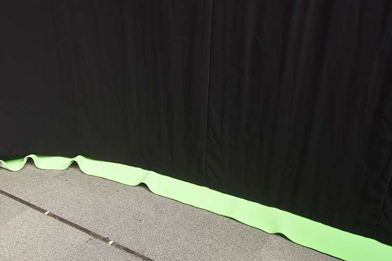 背景は黒幕で覆われていますが、グリーンバックにもできます!天気予報でもおなじみの 「クロマキー」 技術を用い、人物と背景を合成することで楽しい動画を作れます。