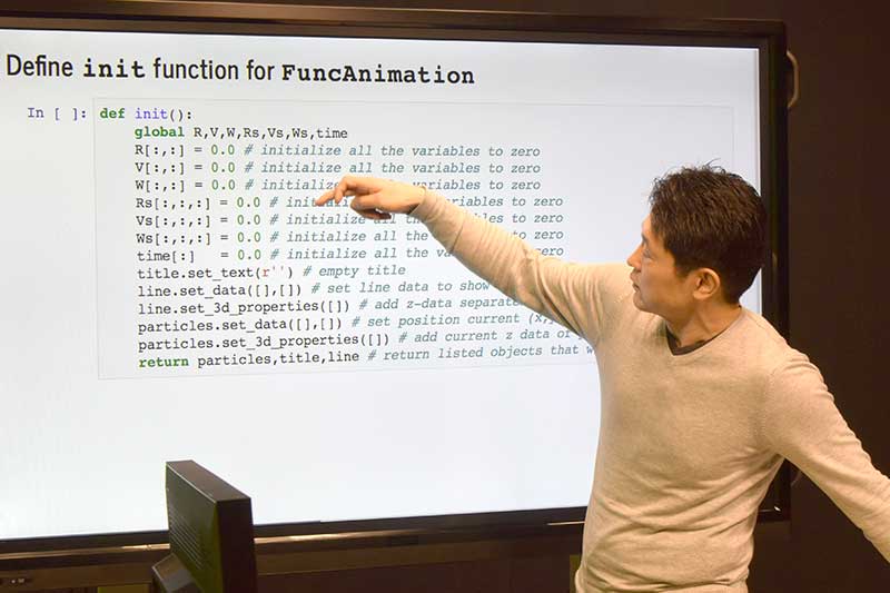 山本先生の研究分野は、複雑流体の移動現象やソフトマター(高分子、コロイドなどやわらかい物質)の計算科学。主に計算機シミュレーションを用いて研究しています!