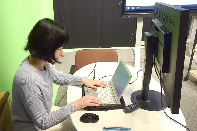 藤岡さん :「ビッグパッドなど基本的な設備は提示しますが、講義スタイルは人それぞれなので、こちらでかっちりとは決めません。先生の「こんなことしたい」を引き出し、それを叶える方策を考えます。もちろん何でも実現できるわけではありませんが、 初めから「できる、できない」を決めずに、とりあえず「やってみよう」! ときには無茶ぶりもありますが(笑)、見る人に何となくでも「あっ、面白そう」と関心を持ってもらえるしかけ作りに励んでいます。」