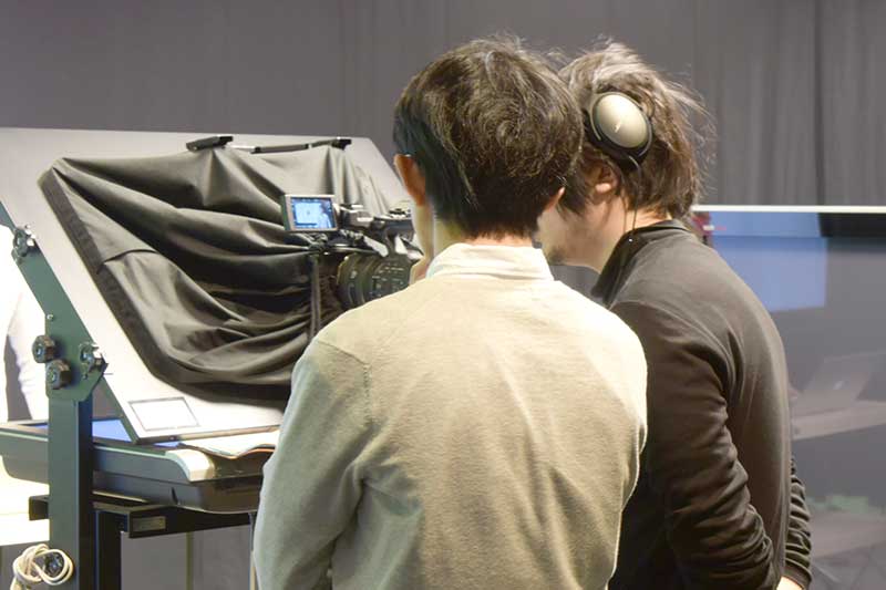 ひととおりスタッフがスタジオの機器を点検した後、先生を交えてリハーサルが始まりました!短い動画でも、入念に撮影準備を行います。