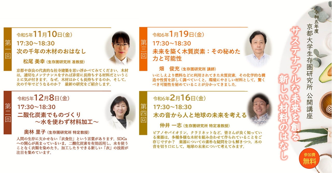 令和5年度 生存圏研究所公開講座「サステナブルな未来を創る新しい材料のはなし」(2023年11月10日等)