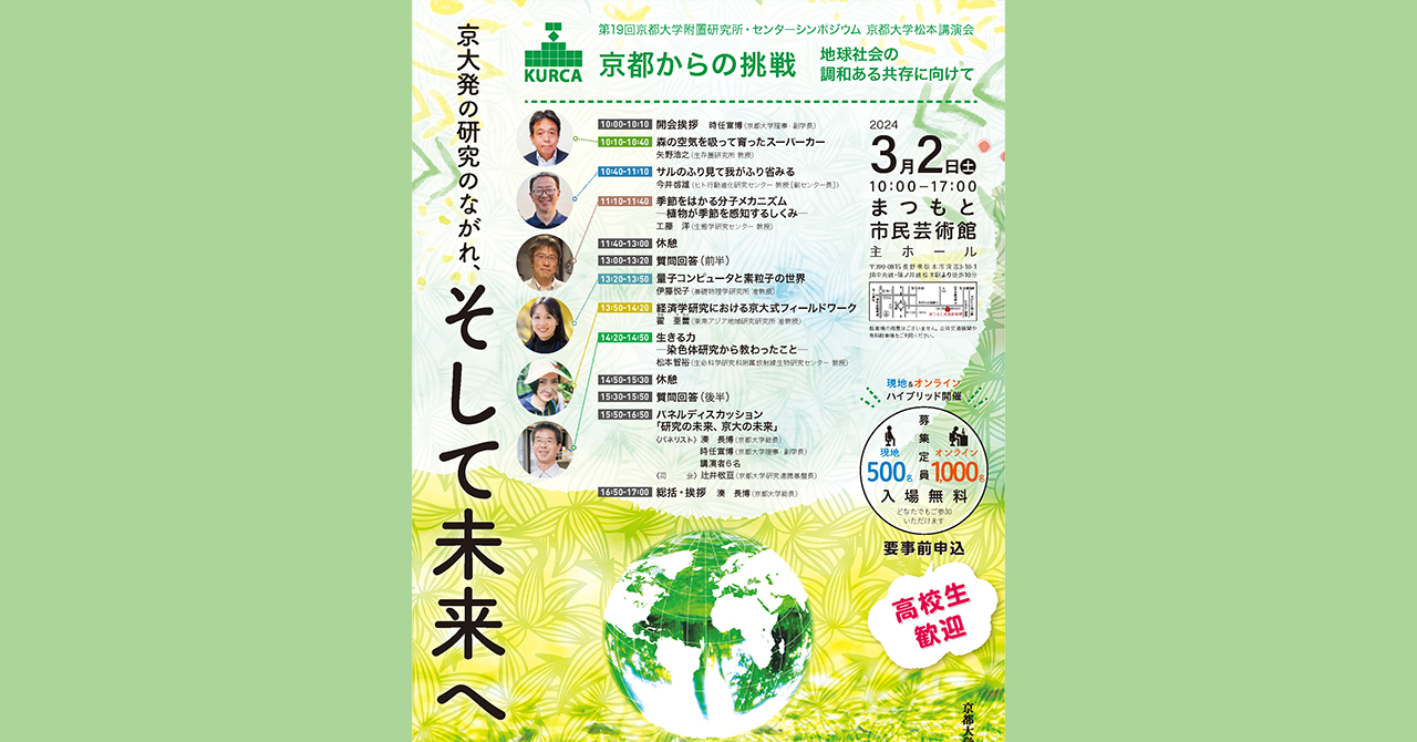 第19回京都大学附置研究所・センター シンポジウム 京都大学松本講演会 京都からの挑戦 -地球社会の調和ある共存に向けて-「京大発の研究のながれ、そして未来へ」(2024年3月2日)
