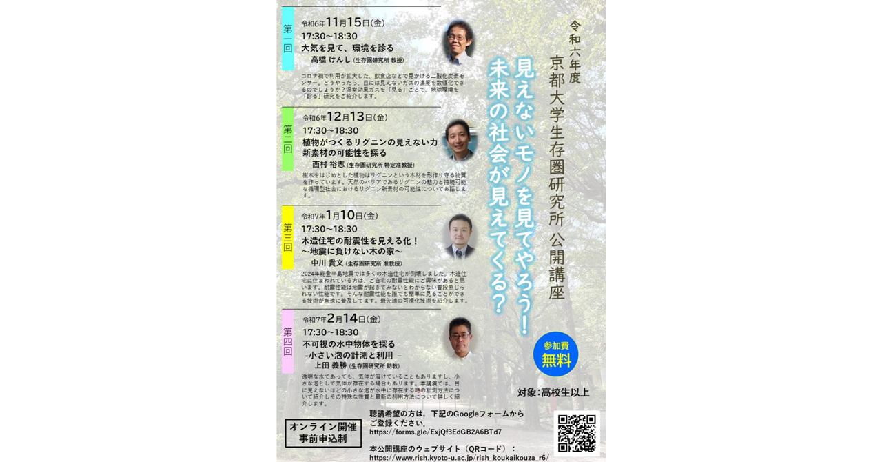 令和6年度 京都大学生存圏研究所 公開講座「見えないモノを見てやろう! 未来の社会が見えてくる?」(2024年11月15日他・全4回)