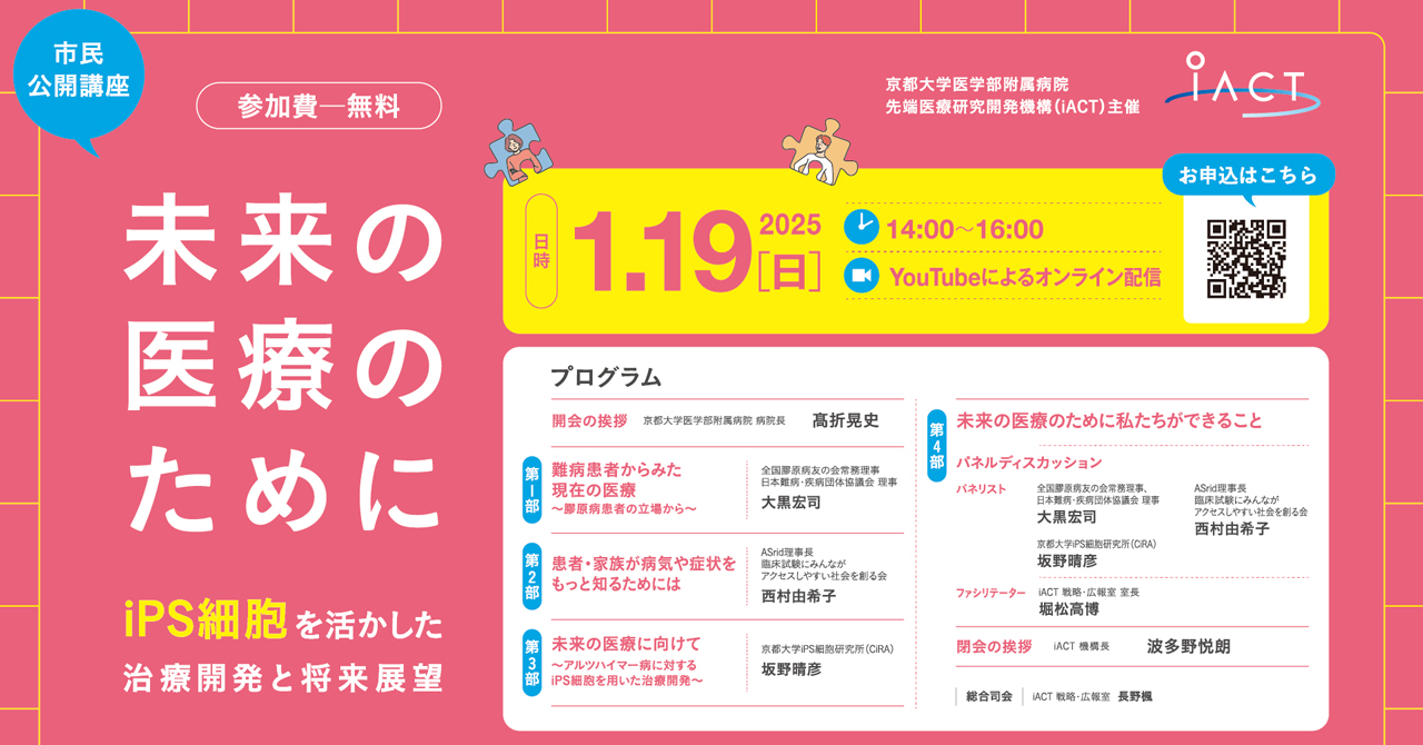iACT市民公開講座 「未来の医療のために -iPS細胞を活かした治療開発と将来展望-」(2025年1月19日)