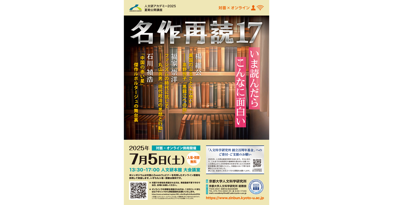 人文研アカデミー2025 夏期公開講座「名作再読17 -いま読んだらこんなに面白い」(2025年7月5日)