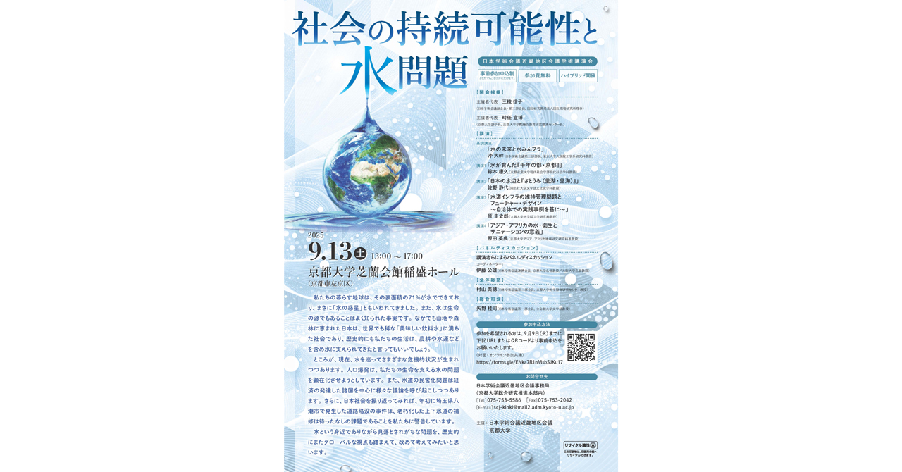 日本学術会議近畿地区会議学術講演会「社会の持続可能性と水問題」(2025年9月13日)
