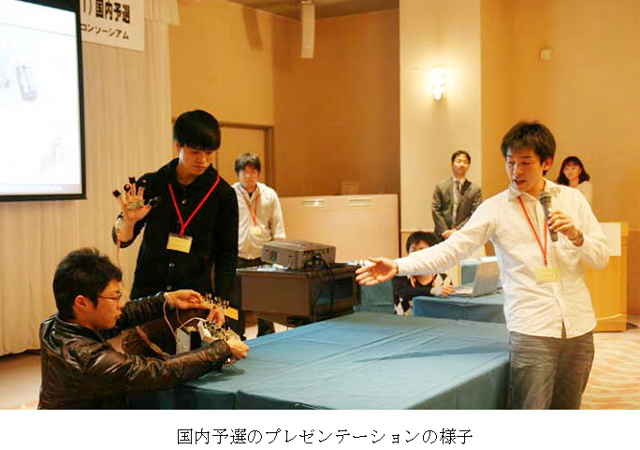 私たちマイクロエンジニアリング専攻ナノ・マイクロシステム工学研究室(田畑研)の4回生有志で結成されたチーム「TBT」は、このたび、仙台で開催された第2回国際ナノ・マイクロアプリケーションコンテスト日本予選に出場し、1位を受賞しました。このコンテストはMEMS(微小電気機械システム)を用いたアプリケーションを提案し、試作した成果を競うものであり、日本、中国、アメリカ、ドイツ、台湾、香港など21の国と地域で予選を行い、2011年6月に北京で世界大会を行います。出場対象者は高校生、高専生、専門学校生、大学生、大学院生です。