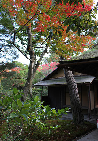 ![]() 水面に映る紅葉 | ![]() 茶室の周辺 |