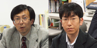 ![]() 左から生命科学研究科の佐藤文彦 教授、大学院生の竹村知也氏 |