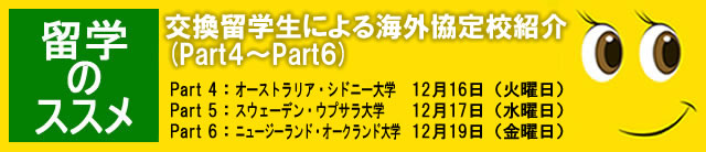 留学のススメ 交換留学生による海外協定校紹介(Part 4~Part 6)