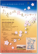 一昨年より宇治キャンパスの「宇治おうばくプラザ」にて行っている「たそがれ花見コンサート」を、本年も下記のとおり開催することとなりました。