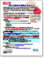 平成24年12月1日(土曜日)にIELTS試験を京都大学で実施します。詳細は後日、京大生向け海外留学最新情報、および各部局の掲示板等を確認してください。