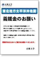 京都大学では、今回の大地震で被災された方々への支援策として、以下のとおり各式典において義援金を受け付けることにしました。式典ご参加の方々のあたたかいご協力をお願いします。