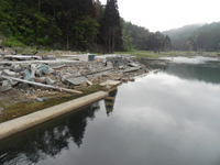 杉人工林の間伐作業、材木の山出し、養殖筏の組み立て作業、流域の清掃など