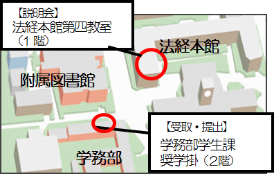 場所 学務部学生課奨学掛(吉田キャンパス本部構内、附属図書館南 赤レンガ建物2階)