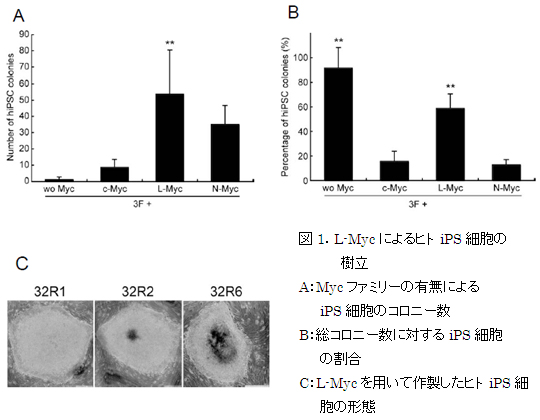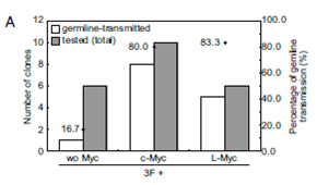 • L-Myc遺伝子はヒトおよびマウスiPS細胞の作製効率の向上に有用である。