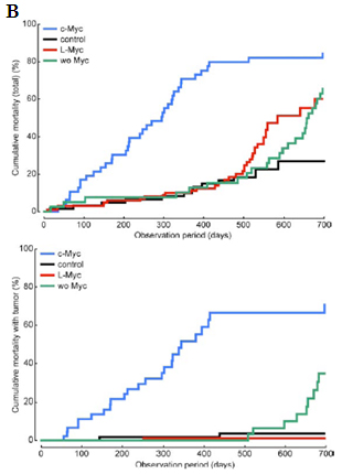 • L-Myc遺伝子の利用により、c-Myc遺伝子で示された腫瘍形成がほとんど見られなくなる。