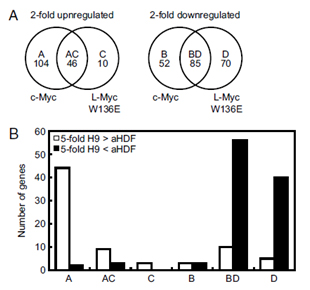 B:Mycによって調節される遺伝子の比較