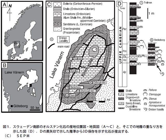 生物の多様性が一気に増大した「カンブリア紀爆発」を裏付ける貴重な証拠の一つとしてスウェーデンのオルステン化石生物群は世界的に有名である。この化石群は、古生代カンブリア紀末期(約4億9,500万年前)のもので、体長0.1~2mmの小型海生動物が、眼や付属肢がついたまま立体的な化石として保存されている(3D化石)。この驚異的な化石の正確な産出層準や、そもそもどうしてこんなに見事な化石となったのかという過程については、全くわかっていなかった。