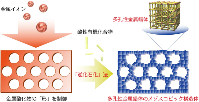 さらにこの「逆化石化」法は本質的にアルミナ以外の金属酸化物にも応用が可能であるため、様々な金属イオンを有する多孔性金属錯体の「形」の制御が進んで行くことが期待されます。