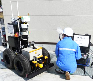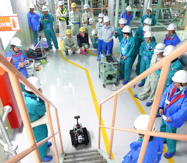 RTミドルウェアを活用した今回の実証実験では、研究開発中の災害対応ロボットの機能や性能の検証を目的として、2012年3月に中国電力株式会社、日本電気株式会社の協力のもと、島根原子力発電所内の屋内または屋外の施設において実施したものです。実験では、階段や通路における走行性能や無線の到達距離の確認など、実際の原子力施設に特化した環境において実験を実施し、今後の研究開発の方向性について検討しました。