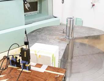 | 写真4 本学原子炉実験所「コバルト60ガンマ線照射装置」にて、ロボット用の各種センサや無線装置の耐放射線性能の評価実験の様子 | |