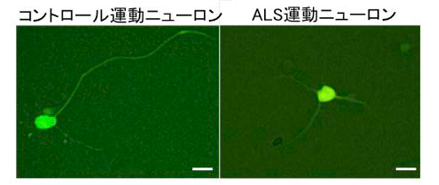 ALSは運動ニューロンが変性することで次第に全身が動かなくなり死に至る疾患です。これまではALS患者さんから運動ニューロンを取り出すことができなかったために、患者さんの病態をそのまま反映するモデルを作ることが難しく、ALS治療に有効な治療薬開発は進んでいませんでした。