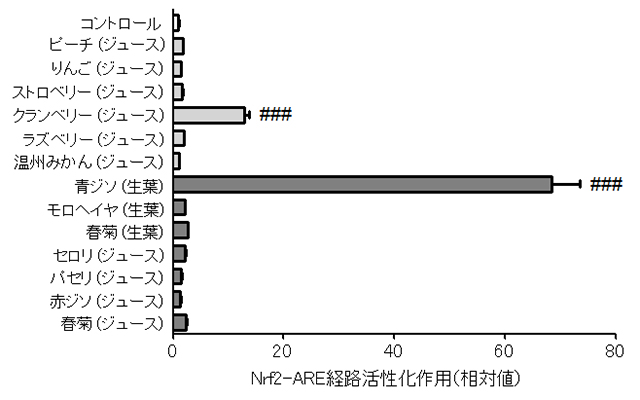 青ジソ抽出物によりNrf2-ARE経路が活性化されるのが確かめられた。