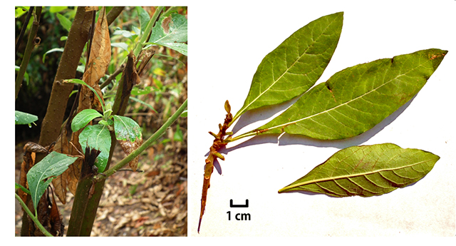 図1:東アフリカのチンパンジーが食べるキク科の植物ベルノニア・アミグダリナ。とても強い苦味を呈するため、東アフリカのチンパンジーが寄生虫を殺す薬として利用しているのではないかと考えられている。