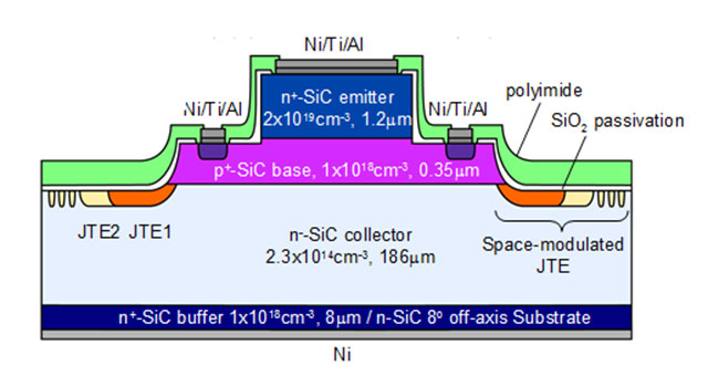 Miyake, H.; Okuda, T.; Niwa, H.; Kimoto, T.; Suda, J. 21-kV SiC BJTs With Space-Modulated Junction Termination Extension. Electron Device Letters, IEEE, vol.33, no.11, pp.1598-1600 (2012) doi: 10.1109/LED.2012.2215004
