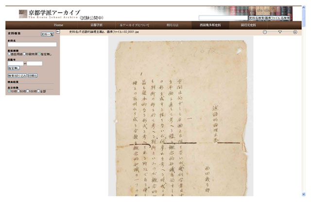 図1:京都学派アーカイブ、試験公開中の画像