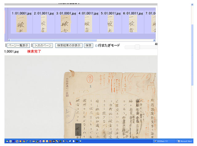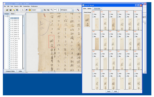 また、SMART-GSシステムの開発では、検索技術を利用する手書き文書の半自動翻刻(OCR的利用)、遠隔地に在住する複数の研究者がインターネット上でリアルタイムに協働して史料分析・翻刻を可能にする機能の開発が計画されています。