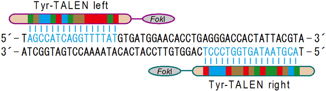 図1:ラットチロシナーゼ(Tyr)遺伝子を標的としたTALエフェクターヌクレアーゼ(TALEN)