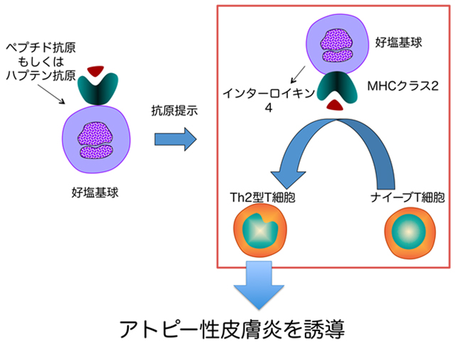 椛島健治 医学研究科准教授、宮地良樹 同教授、大塚篤司 日本学術振興会特別研究員は、アトピー性皮膚炎の病態であるTh2型免疫反応に好塩基球が必須であることを発見しました。