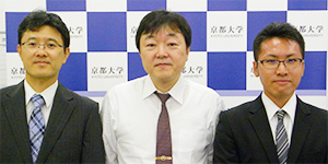 野田教授(中央)、渡邉明佳 浜松ホトニクス株式会社中央研究所材料研究室専任部員(左)、杉山貴浩 同室員(右)