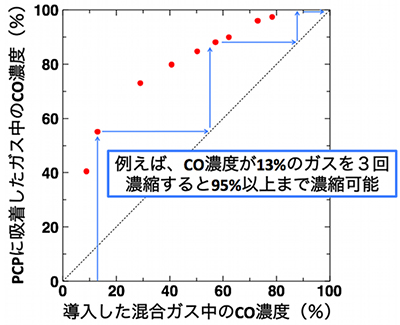 図5:CO/N2混合ガスを用いたCO濃縮実験の結果