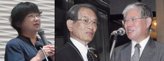 ![]() 左から吉川センター長、懇親会で挨拶をする松本総長、横内北海道京大会会長の挨拶 | |