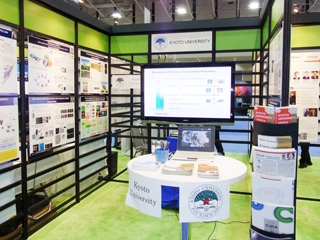 本イベントは、独立行政法人科学技術振興機構(JST)のとりまとめによりジャパン・パビリオンを設置し、本学をはじめ、日立アメリカ社、JR東海、慶應義塾大学、立命館大学、東京大学、理化学研究所、日本原子力研究開発機構、日本学術振興会、海洋研究開発機構、JSTの日本国内11機関が共同で展示を行いました。本学では、映像によるプレゼンテーションとパネル展示により、下記6名の教員の研究を紹介しました。本学のブースには3日間で約170名の来場者があり、世界をリードする最先端の研究に、各国の研究者をはじめメディア関係者などの高い関心が集まっていました。
