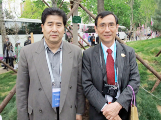清華大学創立百周年の記念植樹に出席した森機構長(右)と記念植樹園をデザインした李樹華(LI Shuhua) 清華大学建築学院教授(本学農学研究科 博士後期課程 1997年修了)