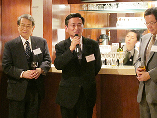 ![]() 森本氏(中央)による乾杯の挨拶 | ![]() 脇田氏からの挨拶 |