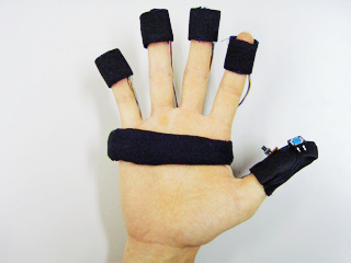 ![]() 指文字翻訳機「TEMS」(手のひら) | ![]() 指文字翻訳機「TEMS」(手の甲) |