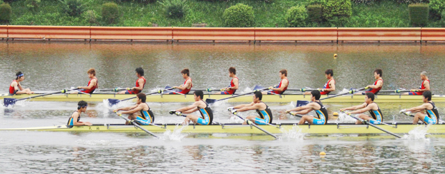 ![]() 力漕する京都大学エイト(向こう側) |