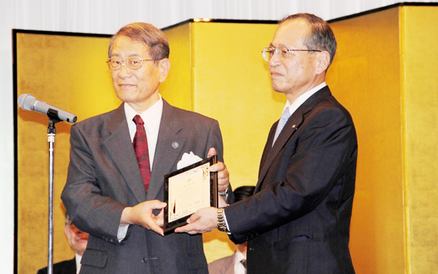 松本総長から内田キヤノン株式会社代表取締役社長への感謝状贈呈