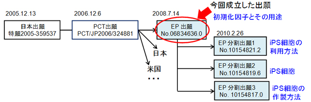 山中所長のiPS細胞基本特許は、日本では既に3件成立しておりますが、海外では南アフリカ、ユーラシアおよびシンガポールで成立しています。今回の欧州における特許の成立は、海外の主要地域としては初めての成立となります。